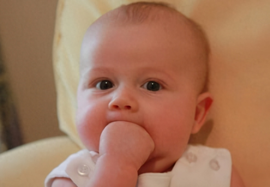 此时的孩子对什么东西都开始感兴趣,而且也都会通过自己的小嘴来探一探究竟,这是他们探索外界的有力工具。