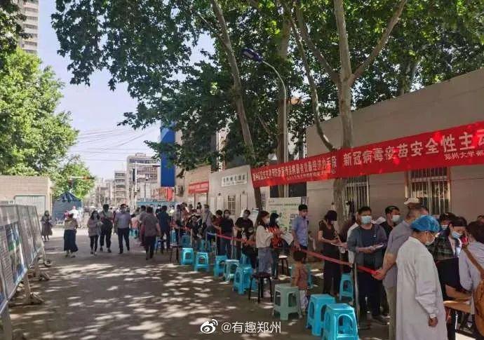 郑州街头排队打疫苗场景